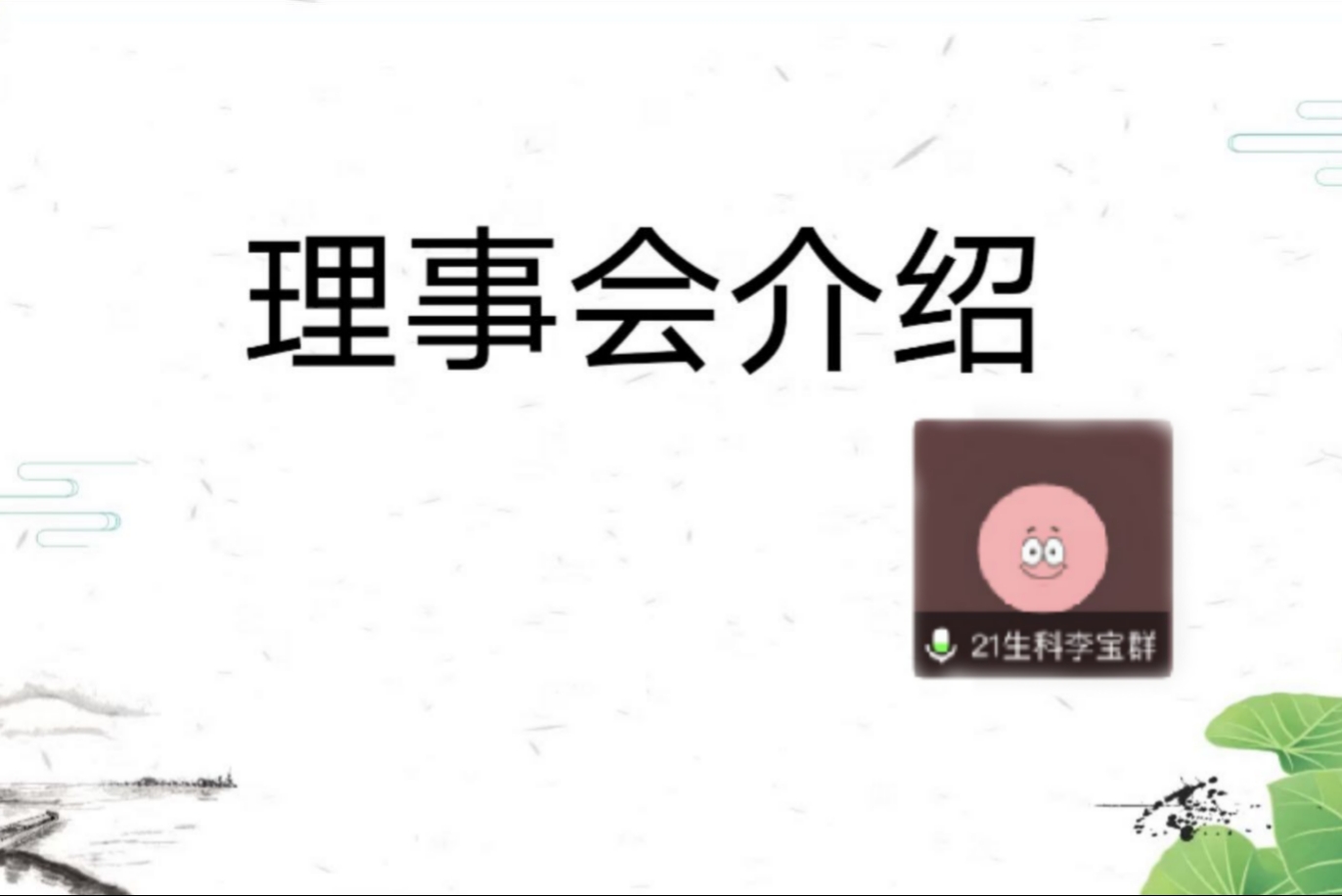 此次会议的主要内容包括理事会介绍、监事会选举及支部团员会议三个部分。李丹从基础设计、特色设计和互动设计三个方面向会员介绍三叶草园艺社。理事会成员依次进行自我介绍。李丹以文字和图片的方式介绍监事会的职责并以线上投票的方式进行监事会选举。