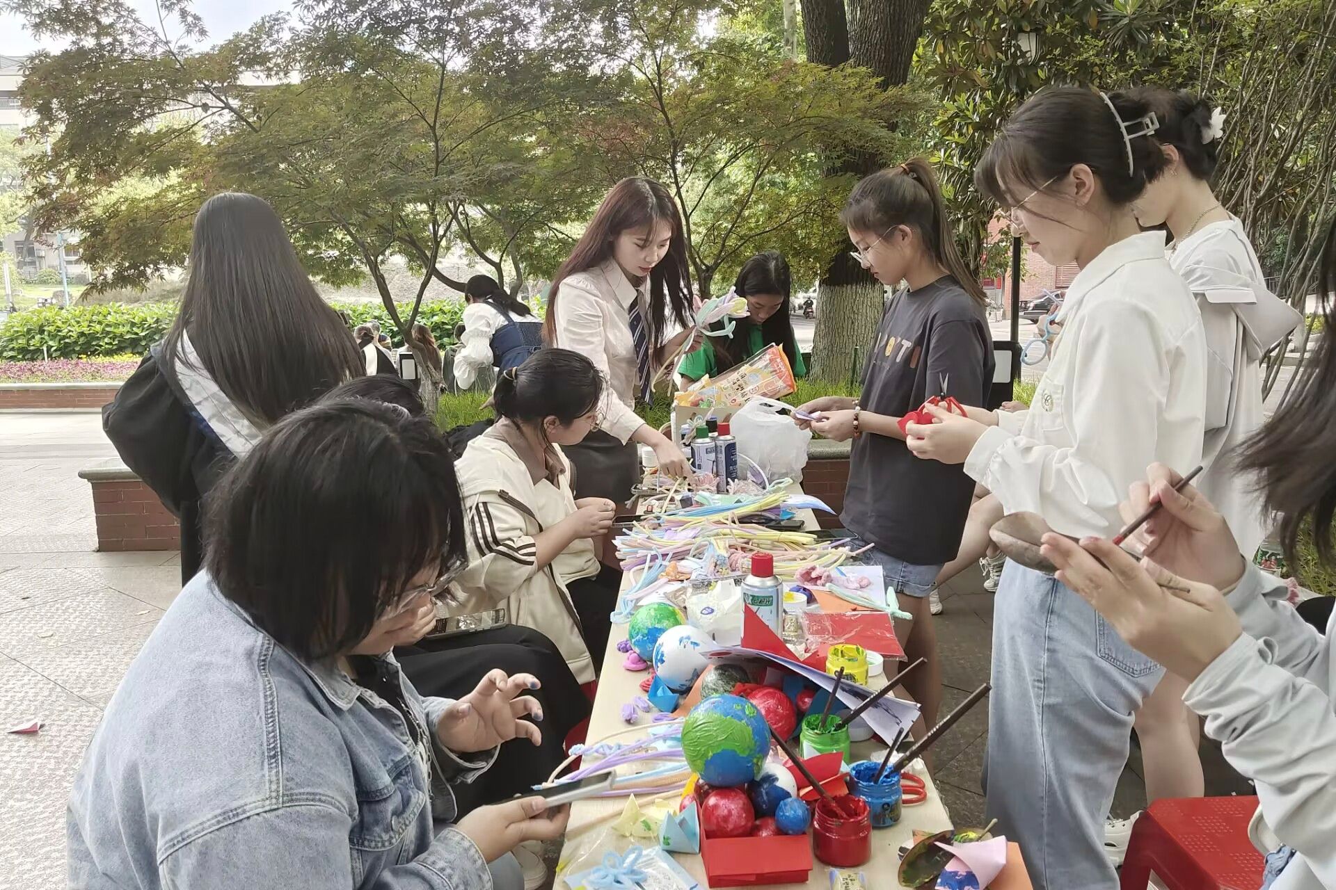 (通讯员 刘永琪 庾雪菲)5月13日下午,生命科学学院创意模型社联合十二家社团于湖南师范大学校门处举办“落叶寄情,绘笔师大”手工活动。