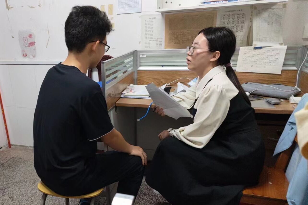 周洁帆与学生交谈