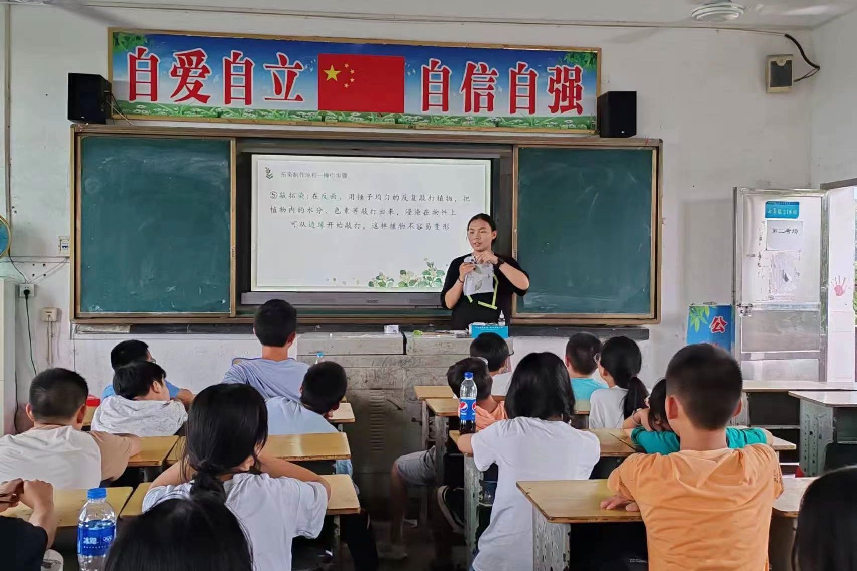 (通讯员 陈春雨 李丹)7月20日上午,生命科学学院三叶草园艺社赴郴州市苏仙区五里牌中学暑期社会实践团在五里牌中学开展植物拓染课程,实践团成员罗嘉、喻琪担任此次课程主讲人。