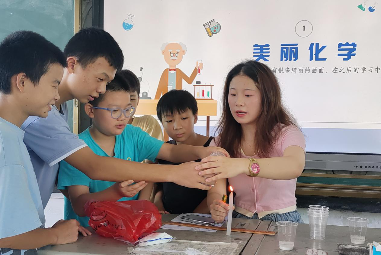(通讯员 李丹 陈春雨)7月22日上午,生命科学学院三叶草园艺社赴郴州市苏仙区五里牌中学暑期社会实践团开展趣味化学课程,实践团成员江艾雯担任此次课程主讲人。