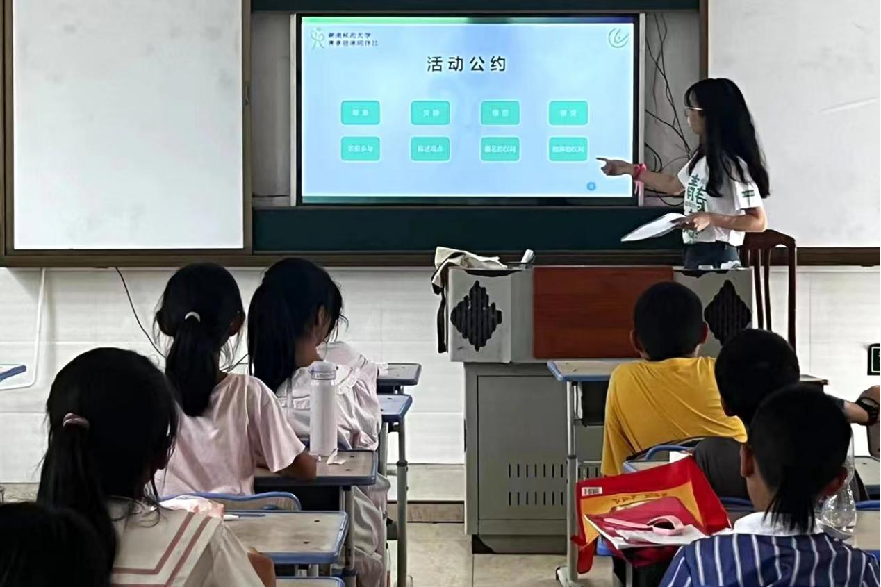 (通讯员 邓雅菲)7月21日,生命科学学院三叶草园艺社“凝聚星火,暖心助学”暑期社会实践团于郴州市苏仙区白露塘中心完小开展青春康教育课程。实践团成员谭莎莎担任此次课堂主讲人。