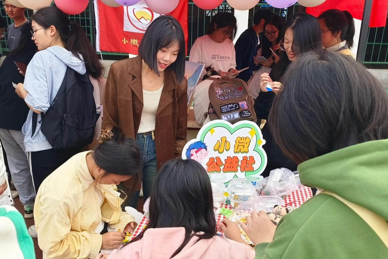 (通讯员 郑文妍 戴孟霖)11月5日,生命科学学院(以下简称“生科院”)达人学社、暖阳生物学社、三叶草园艺社、创意模型社、小微公益社、科幻动漫协会及读书协会七大社于湖南师范大学北院田径场参加百团大战。院学社管指导老师吴晴前往活动现场进行指导。