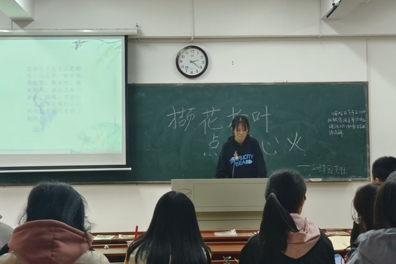 (通讯员 陈丹丹 覃兴杰 胡新)11月26日下午,生命科学学院(以下简称“生科院”)三叶草园艺社于生科院3号楼B108教室举办“撷花拾叶,点炬心火”手工活动。三叶草园艺社部分会员参与活动。