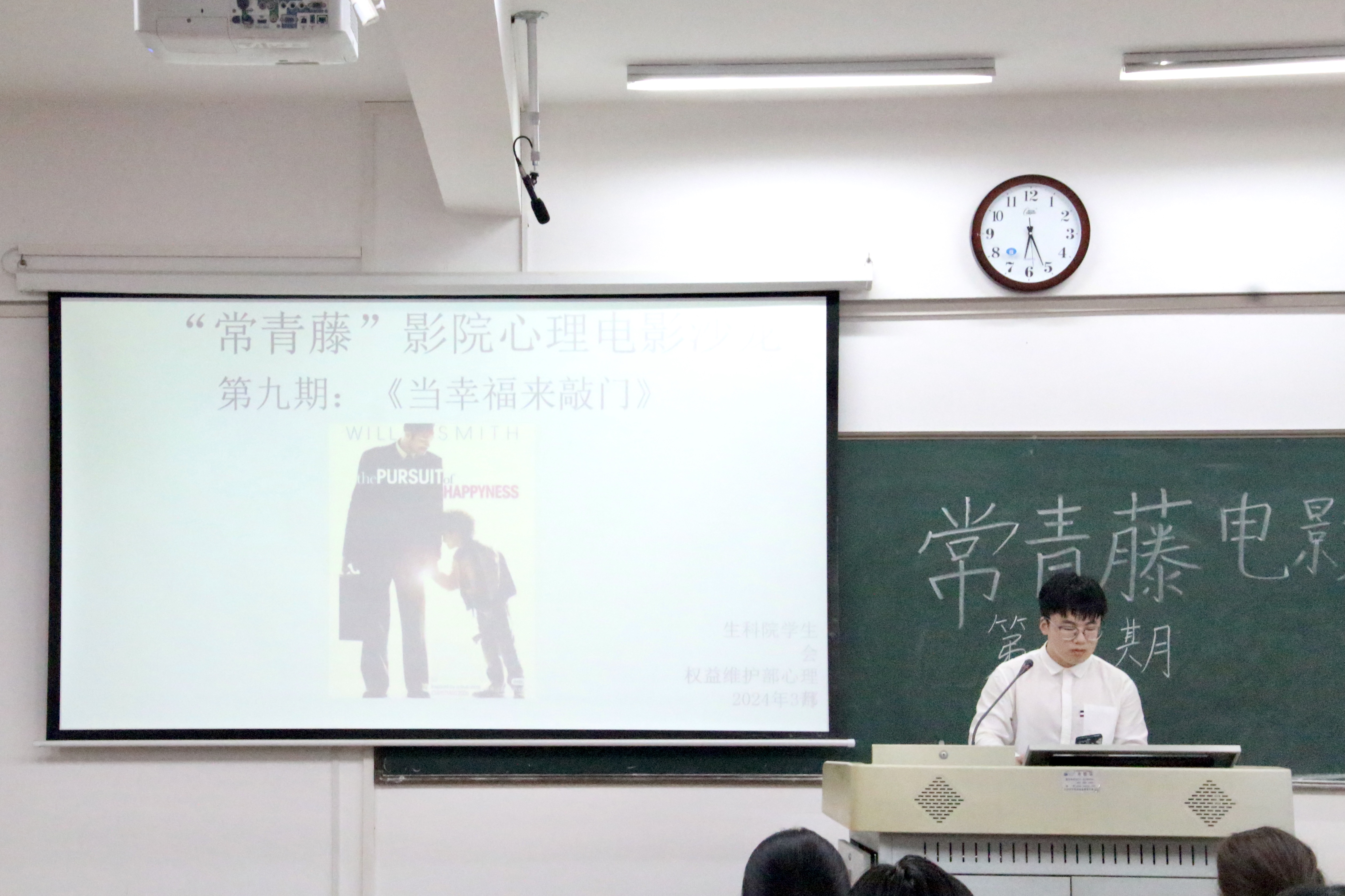 (通讯员 赵梦冉 陈鑫 蒋梦瑶)3月31日晚上,生命科学学院学生会权益维护部于生科院三号楼B107教室举办“常青藤”影院心理电影沙龙第九期观影活动,生科院学生会权益维护部第二负责人担任此次活动主持人。生科院2021级、2022级、2023级部分学生参加此次活动。
