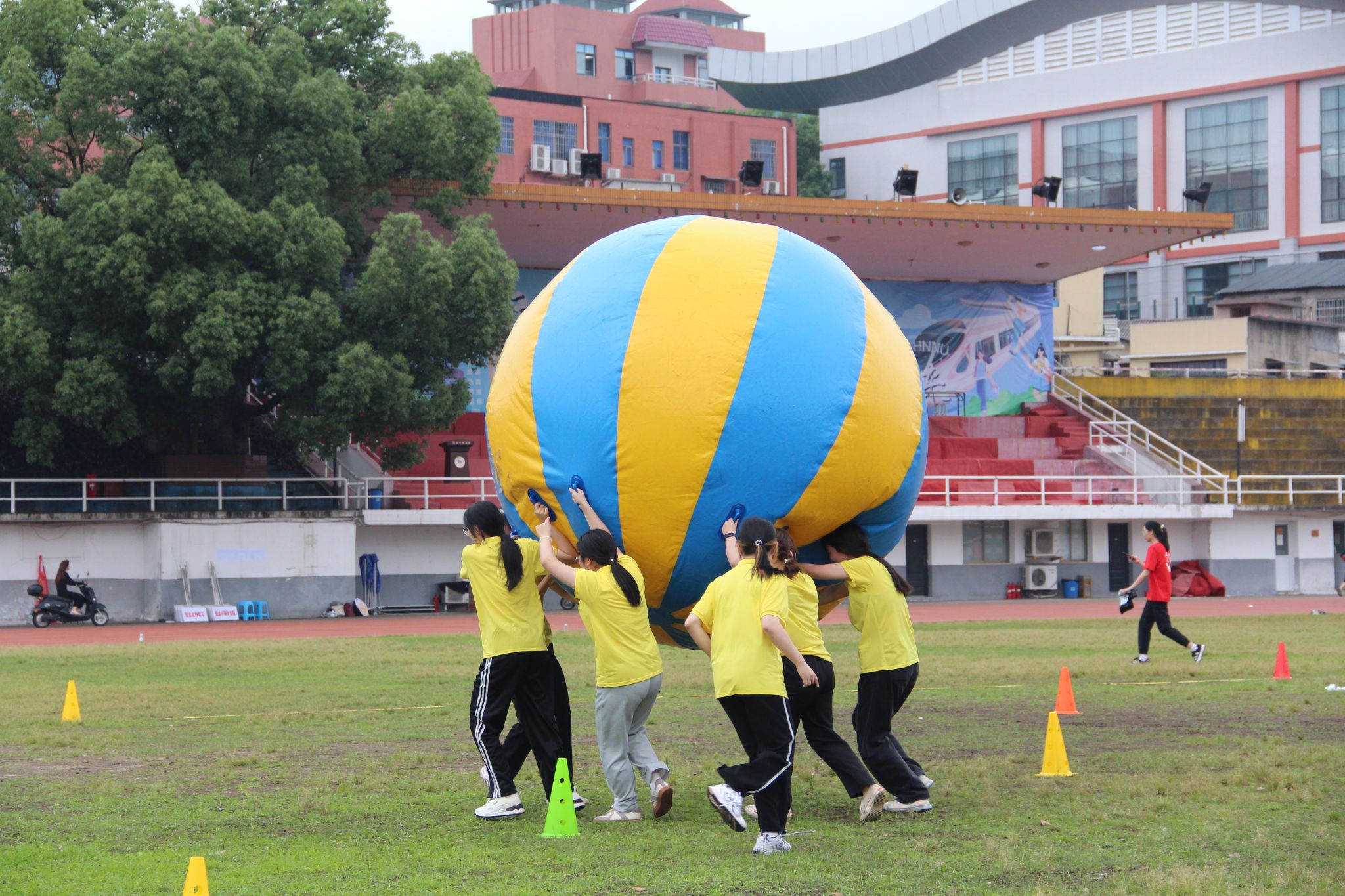 此次活动主要分为团队风采展与趣味运动会两部分。在团队风采展中,队员们跟随歌曲《勇气大爆发》的节奏挥手舞动,展现青春活力与蓬勃朝气。对于趣味运动会中难度较高的“携手并进”游戏,队员们不畏苦难,共同高举巨球、绕过障碍并冲向终点,用实际行动诠释了团结一致、永不言弃的团队竞技精神。为争取“勇往直前”游戏的胜利,队员们需要通过团队协调配合带动毛毛虫道具在赛道上快速行驶,队员们共同呼喊口号,利用口号的节奏协调统一步伐。同学们表示,此次活动不仅帮助他们在课余时间放松身心、锻炼身体,而且进一步理解团队精神与团结力量。