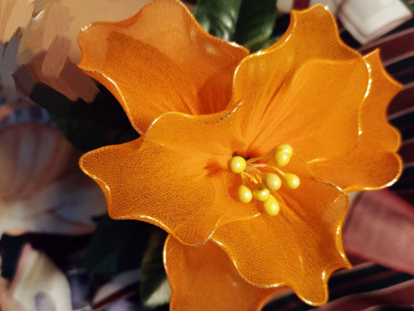 本作品名为“前程似锦”。花朵往往有美好的寓意,因而我们通常会在一些重要而值得铭记的时刻,为喜爱的人送上鲜花。但鲜花虽美容易凋落,所以我萌发了用材料为学姐学长们做一束绢花的想法。这些花由铁丝,绢布和胶带制成,花瓣一片片做好后再装上花杆,就用这一不会凋谢的花祝福学长学姐们前程似锦,幸福快乐如花一般永不消逝!