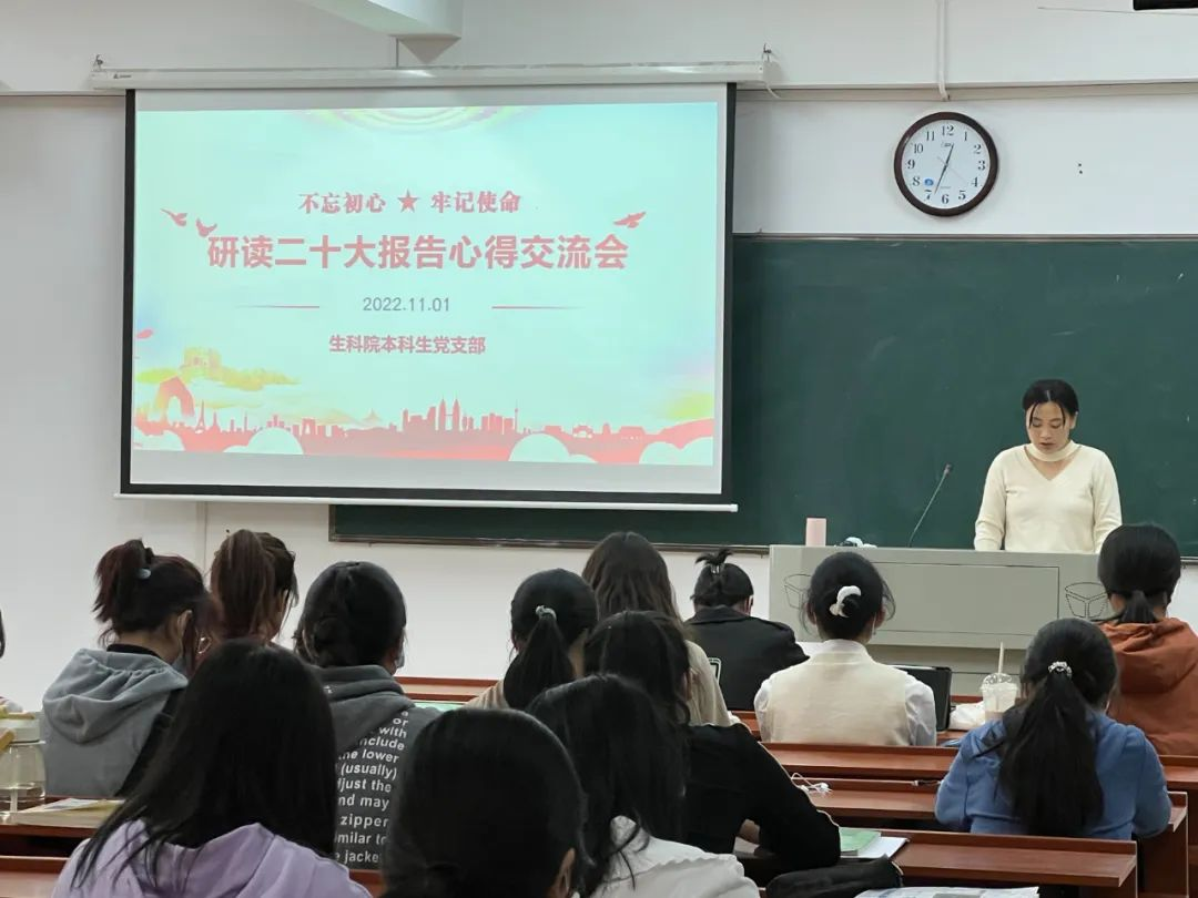 11月1日,生命科学学院本科生党支部在学院开展了“研读二十大报告心得交流会”主题党日活动。本科生第一党支部书记李翠玲、本科生第三党支部书记罗静伟以及本科生党支部全体党员参加此次活动活动。支部委员杨思念担任主持人。