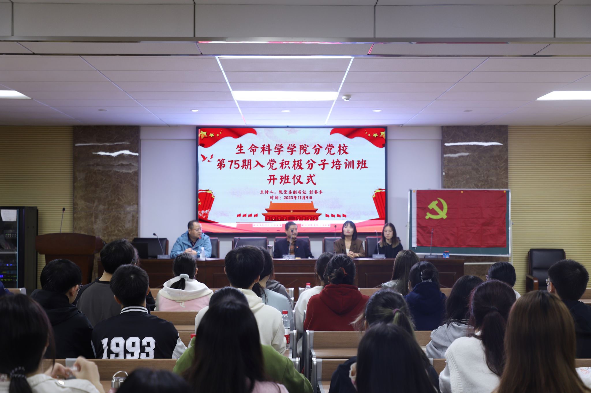 (通讯员 李嘉昕 陈怡辛 龙婵)11月9日晚,生命科学学院于生科院三号楼B307学术报告厅举办第75期入党积极分子培训班开班仪式。生科院正处级专职组织员蒋能胜、生科院党委副书记彭赛丰、生科院学生党支部书记吴晴、生科院第75期入党积极分子培训班全体成员参加此次仪式。仪式由院党委副书记彭赛丰主持。