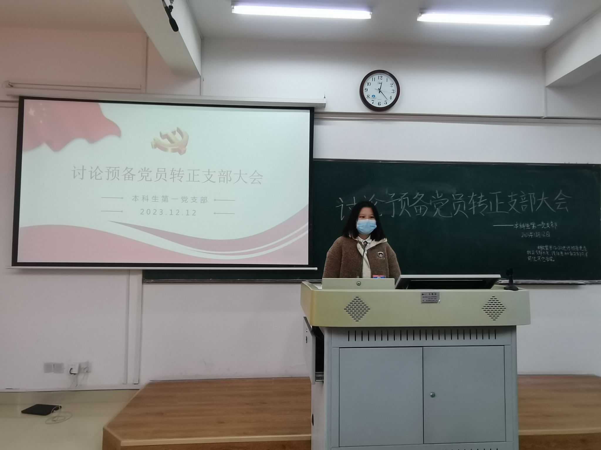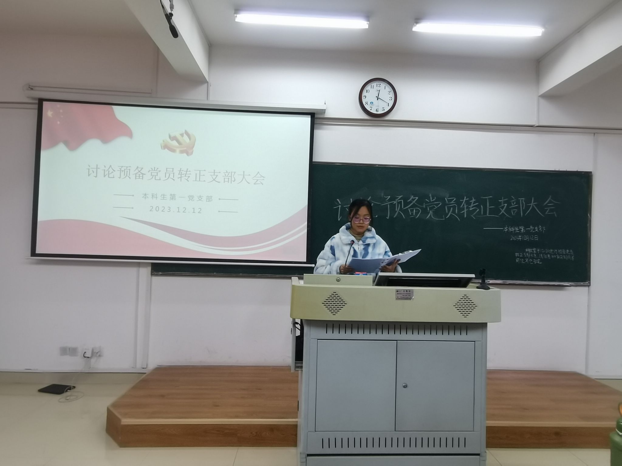 会议分为四项议程:一是预备党员陈轶男等12名同志汇报预备期间的思想、工作情况;二是支部委员会介绍陈轶男等12名同志预备期间的教育考察情况;三是与会党员发表意见,对陈轶男等12名同志能否转正进行充分讨论;四是无记名投票表决。经支部大会无记名投票表决,赞成陈轶男等12名同志转正的人数超过应到会有表决权的正式党员的半数,同意其按期转为中共正式党员。党龄自2023年12月6日算起。