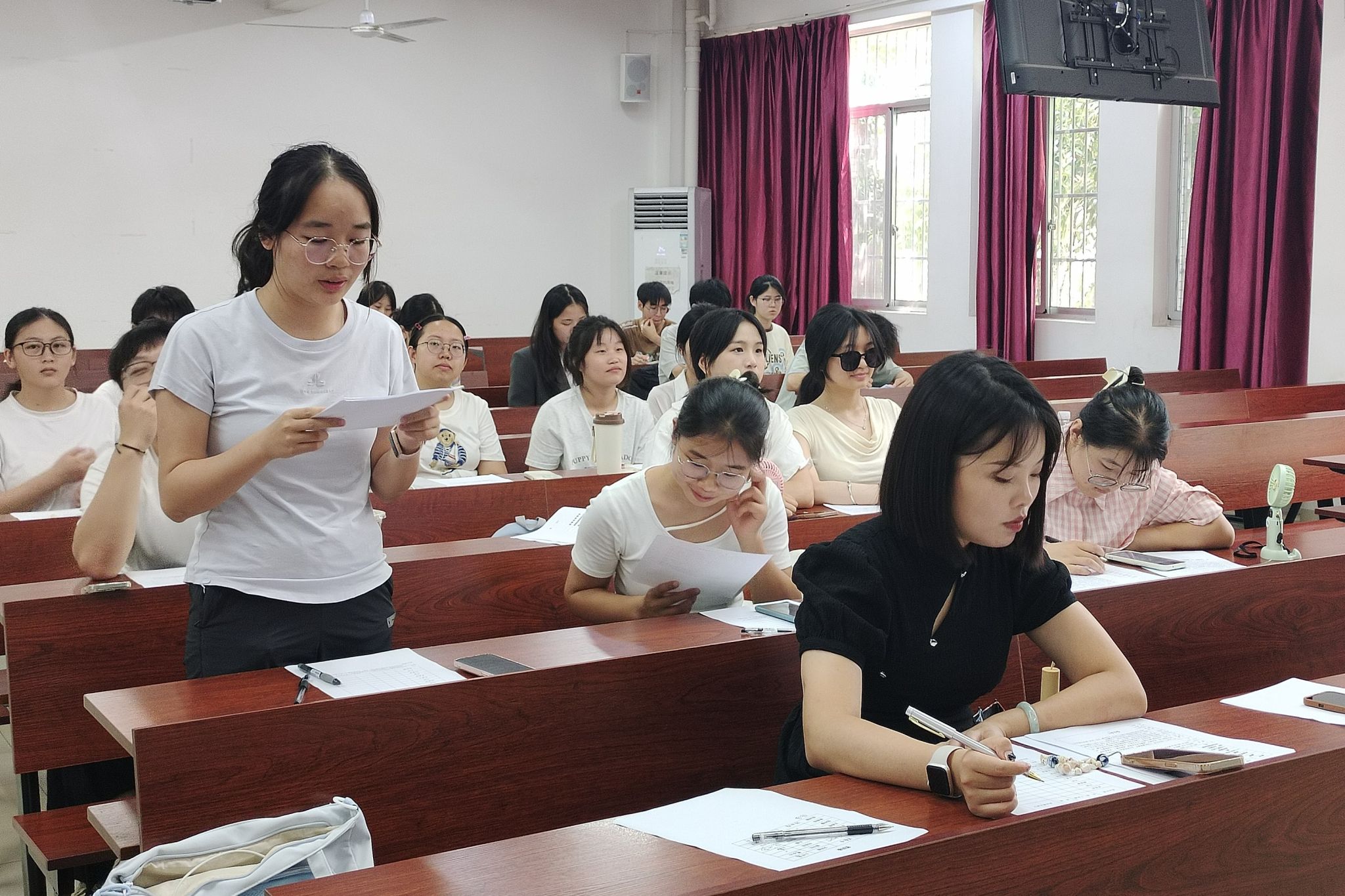 会议分为以下四项议程:入党积极分子庾雪菲等47位同志汇报相关情况;正式党员就入党相关问题向庾雪菲等47位同志提问;到会党员对于拟定发展党员名单进行讨论;无记名投票表决。各支部组织委员宣读推选程序与标准并由候选人依次上台发言,阐明个人情况与入党动机。为进一步了解候选人的思想动向,代表党员向候选人进行党章党史相关问题的提问。经支部大会无记名投票表决,共推选出25名新发展党员。新党员发展对象表示将踔厉奋发,不断加强学习、提升自我。