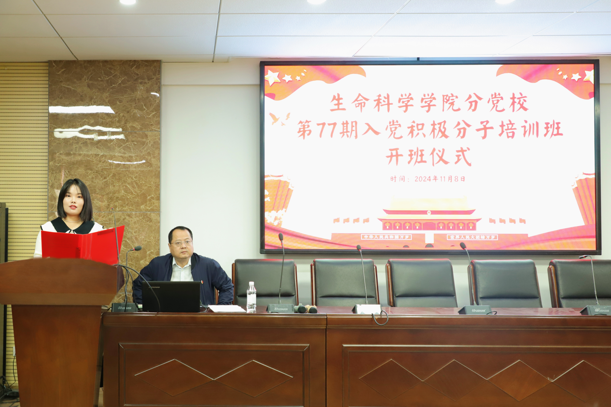 (通讯员 欧阳萱 刘江南)为切实提升党员发展质量,提高入党积极分子的政治素质和理论水平, 引导青年学生听党话,跟党走,11月8日中午,生命科学学院于生科院三号楼B307学术报告厅举办第77期入党积极分子培训班开班仪式。生科院党委副书记彭赛丰出席此次仪式,仪式由学生党支部书记吴晴主持。生科院第77期入党积极分子培训班全体成员参加此次仪式。
