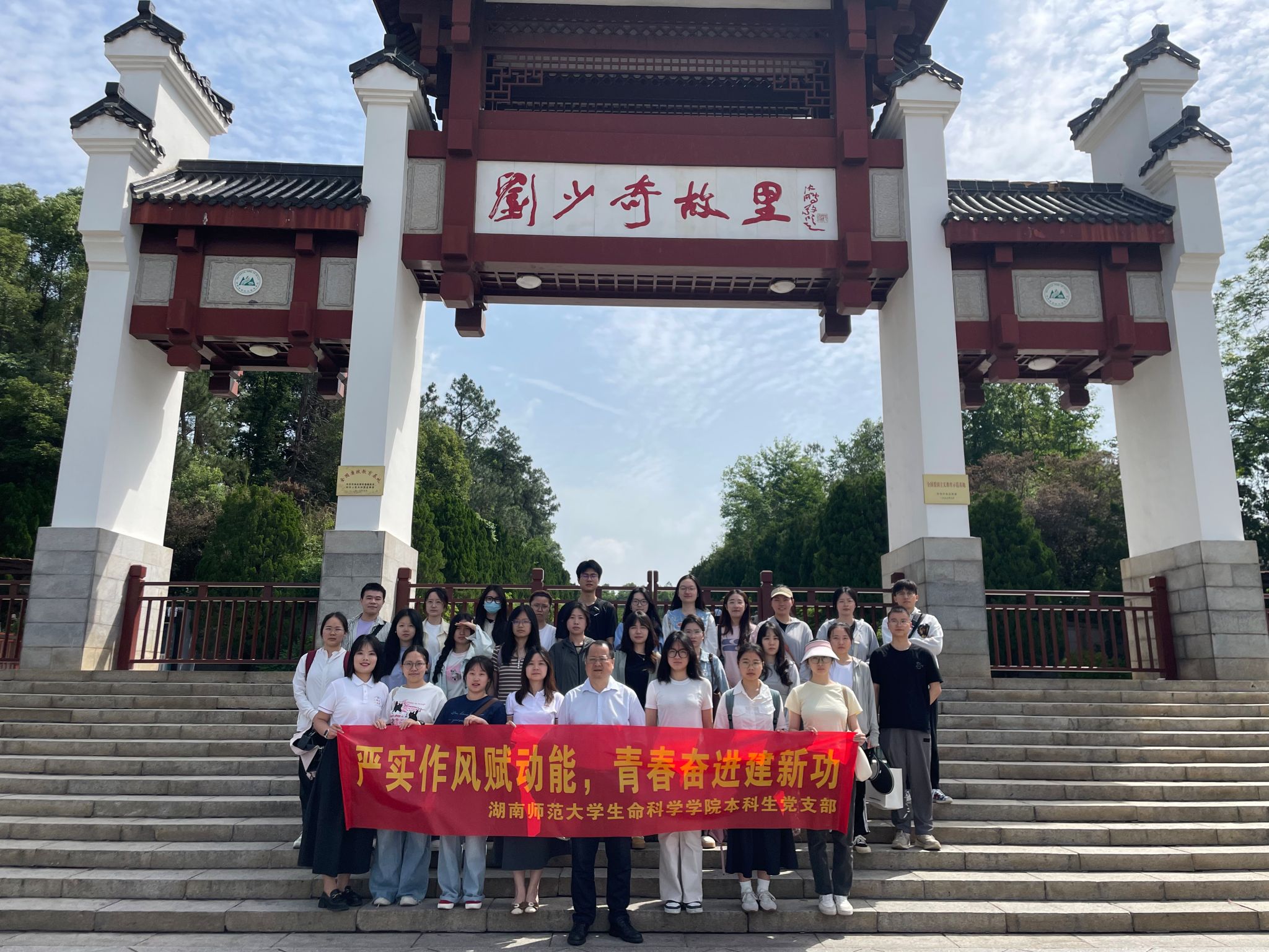 (通讯员 陈嘉妮 罗嘉 吴晴)为深入学习贯彻党的二十大精神,强化毕业生党员党性修养,激励青年学子在新征程上勇担使命,5月9日,湖南师范大学生命科学学院本科生党支部组织2025届毕业生党员赴毛泽东故居、刘少奇故居开展“严实作风赋动能,青春奋进建新功”主题教育实践活动,活动通过实地参观、沉浸式学习等形式,引导党员重温党的光辉历史,筑牢理想信念。