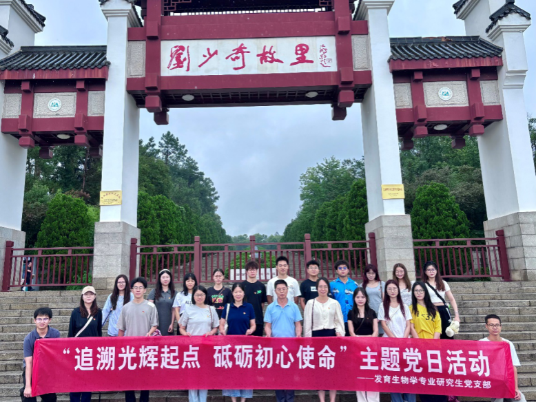 (通讯员 张雪雪 张丽娜)为感悟老一辈革命家的崇高风范,传承实事求是、坚守信仰的宝贵精神,2025年6月11日,湖南师范大学生命科学学院遗传与发育学系党支部和发育生物学专业研究生党支部,组织师生党员共赴宁乡市花明楼景区开展“追溯光辉起点,砥砺初心使命”党性教育活动。师生党员们通过实地研学、互动交流等多种形式,身临其境追寻伟人光辉足迹,在学习《论共产党员的修养》的源头地感悟党性真谛,在缅怀历史中汲取砥砺前行的不竭动力。