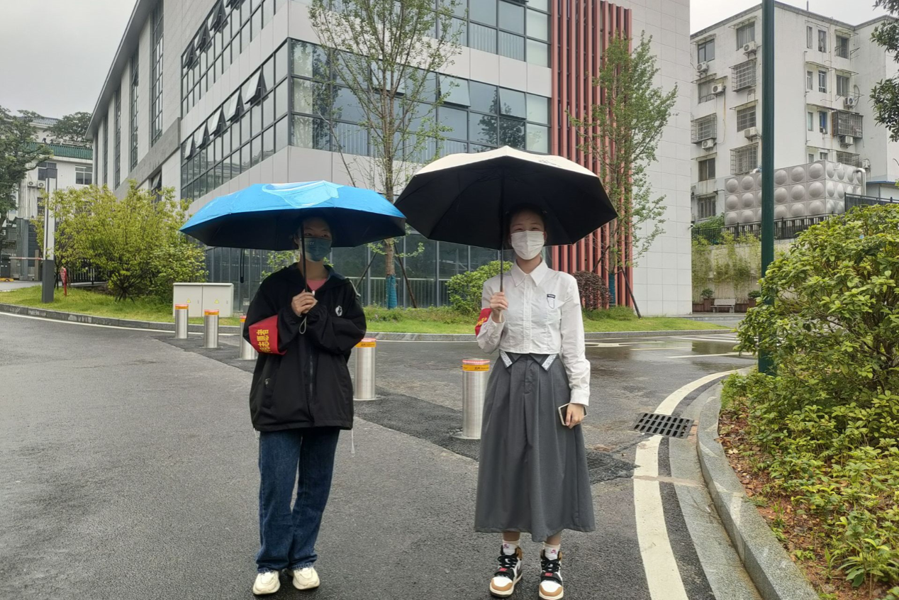 志愿者在学院内执勤