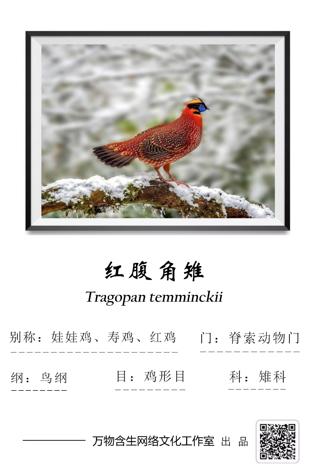 红腹角雉(Tragopa temminckii),属鸡形目雉科角雉属,其别名有娃娃鸡、寿鸡、红鸡。该物种属于国家二级保护动物,被列入世界濒危鸟类名录N级和中国《国家重点保护野生动物名录》二级。