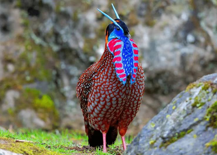 红腹角雉主要分布在亚洲地区,其中东南亚地区的雉类种数最为丰富。中国更是雉鸟最为丰富的国家,西藏东南部、云南北部、贵州东北部、湖南西部、湖北西南部等地均有分布。国外见于印度阿萨姆邦东北部、缅甸北部和越南西北部。