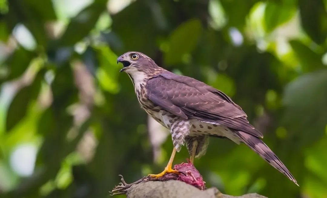 松雀鹰(Accipiter virgatus)为隼形目鹰科鹰属。其别名有松子鹰、摆胸、雀贼、雀鹞等,属于我国国家二级保护动物,列入《世界自然保护联盟》(IUCN) 2012年濒危物种红色名录——无危(LC)。