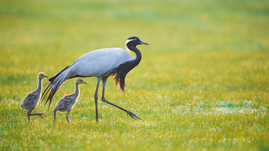 图5:蓑羽鹤的成鸟和幼崽