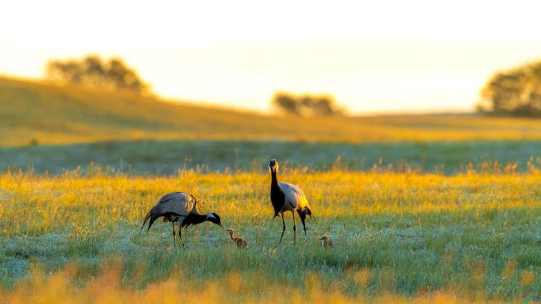 图4:栖息于草地的蓑羽鹤