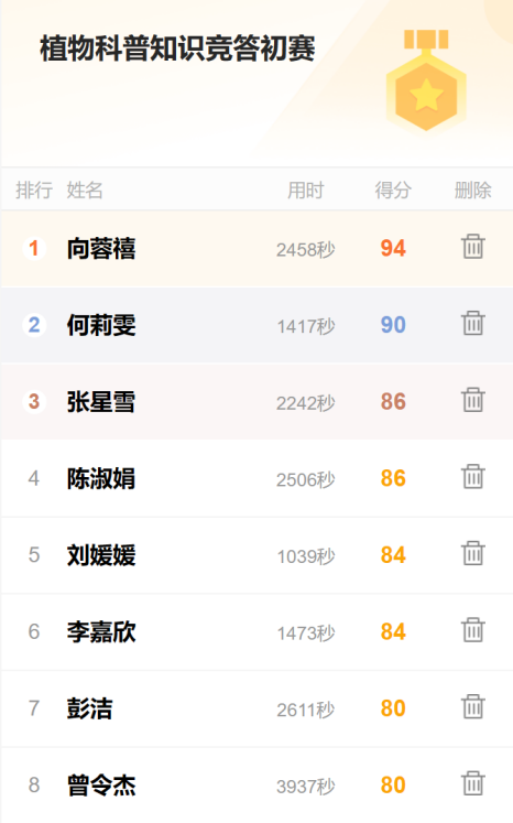 最后,让我们恭喜一下,本次活动决赛总积分最高的“最佳植物科普小组”