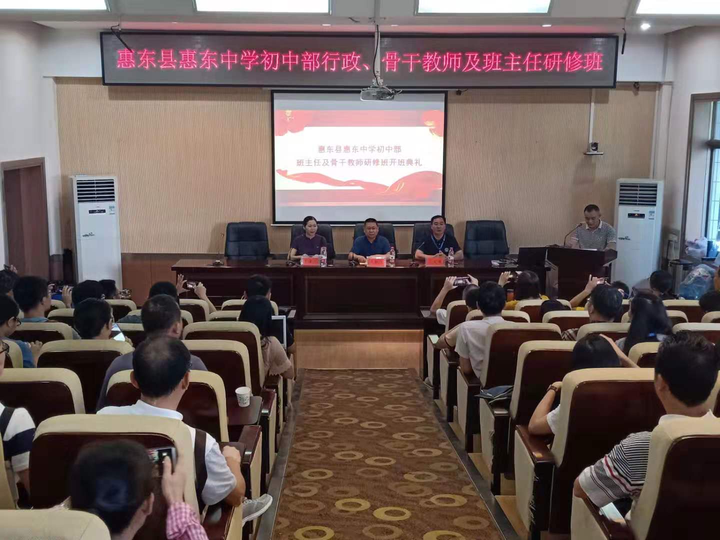 2019年7月23日,惠东县惠东中学初中部班主任及骨干教师研修班开班典礼在学院学术报告厅举行。惠东中学初中部校长翁文赜,湖南师范大学继续教育学院副院长吴跃飞,湖南师范大学生命科学学院副院长丁金花出席典礼,培训办副主任卢钧主持本次典礼。
