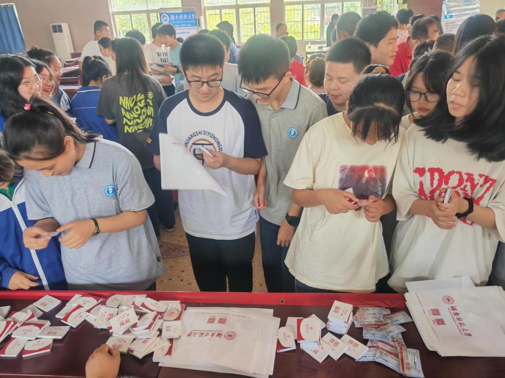 彭赛丰于6月26日带领2018级辅导员王洋到达江江市第一中学进行宣传,陈湘定于6月27日带领2019级辅导员李翠玲到达长沙县第一中学进行宣传。我院招生宣传工作组认真细致地向师生和家长们介绍了我校学校发展概况及2022年本科招生政策,耐心解答了学生和家长重点关心的报考事宜和专业选择等问题,并发放了大量招生宣传资料和文创纪念品,受到了师生和家长们的热烈欢迎,同学们纷纷表示希望自己有机会成功考取湖南师范大学。
