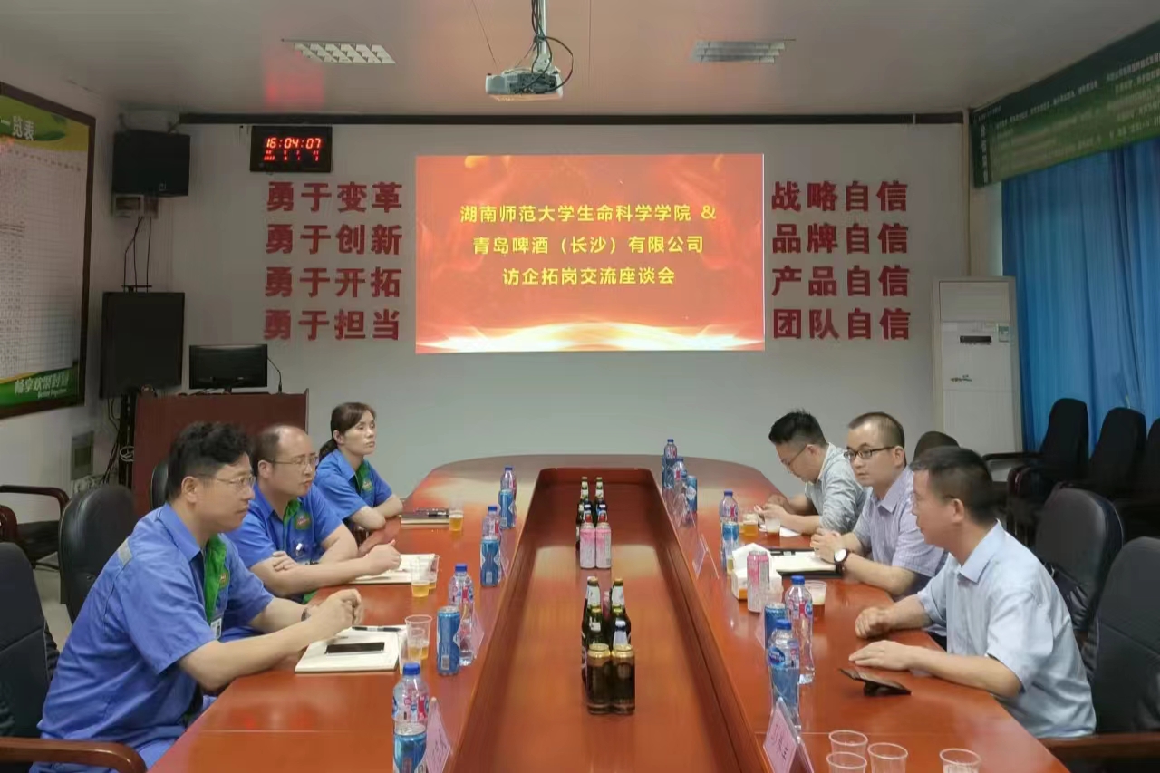 彭贤锦一行先后赴皇氏集团优氏乳业、青岛啤酒和楚沩香农牧股份有限公司参观考察,进车间、入厂区,了解企业规模,看生产环节,感受企业文化,并对相关企业的主要产品、市场定位、市场占有等情况进行了解,并授与相关企业“湖南师范大学生命科学学院就业基地”牌。