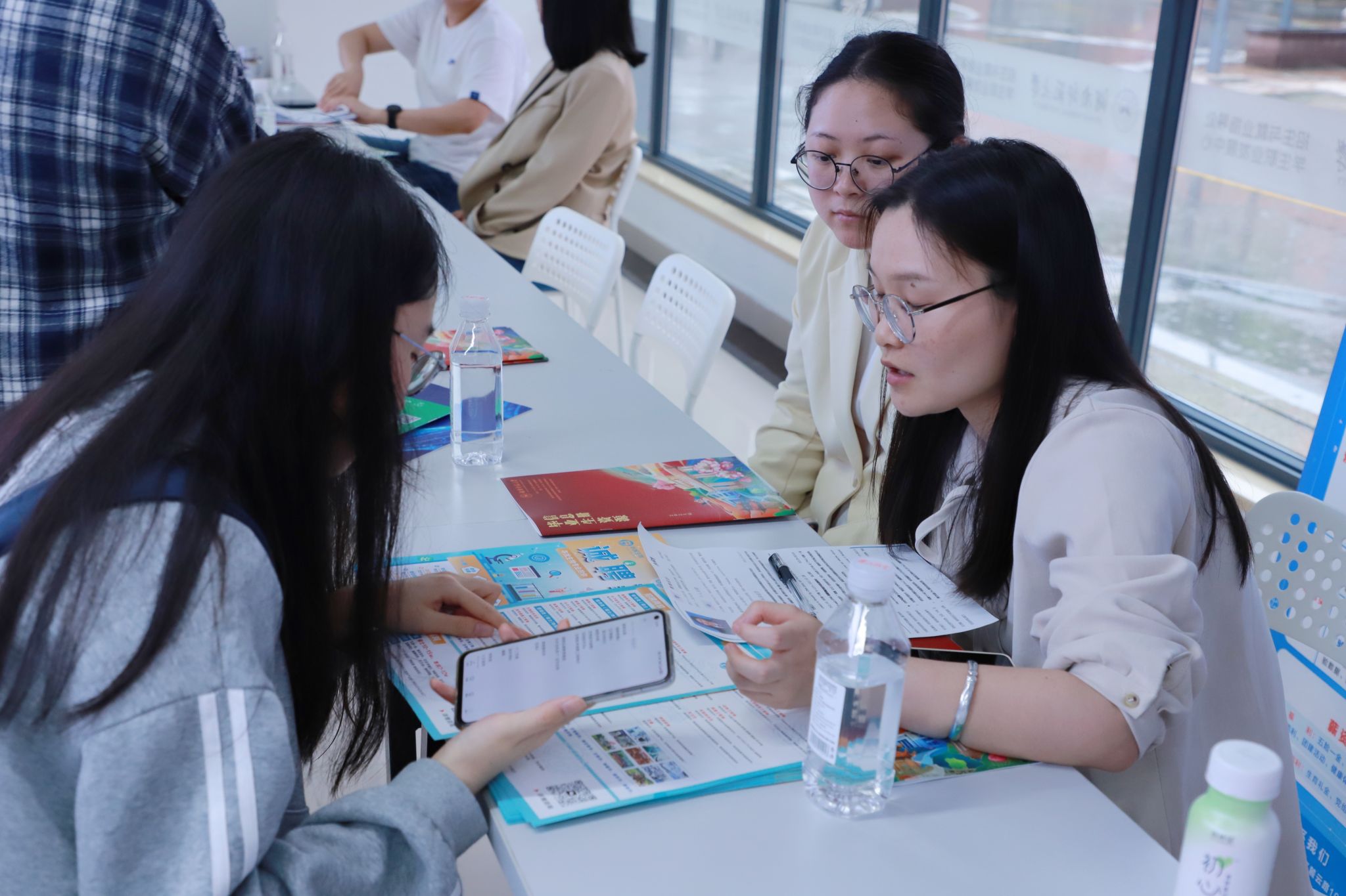 (通讯员 吴静 张彤 邓芝涵)5月11日下午,生命科学学院于桃子湖文化创意产业园A2-5栋举办春季专场双选会。生科院党委副书记彭赛丰、2020级辅导员罗静伟到达现场与参会单位和应聘毕业生交谈。