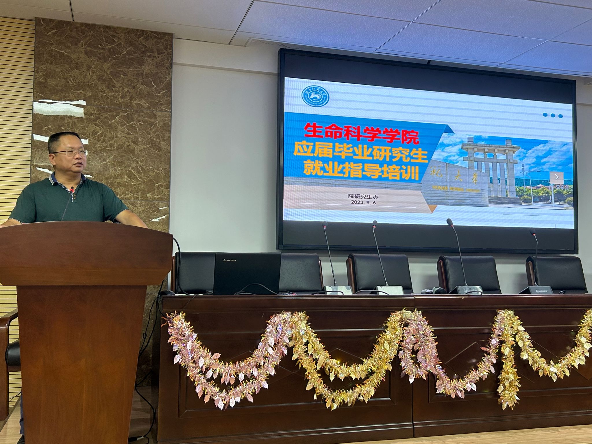 生命科学学院为落实“稳就业”“保就业”决策部署,进一步推进研究生就业工作,9月6日上午,学院在三号楼307报告厅组织开展了2024届毕业研究生就业培训。学院党委书记谢罗庚、研究生办老师黄畅、贺源和近200名毕业生同学参加了此次培训。