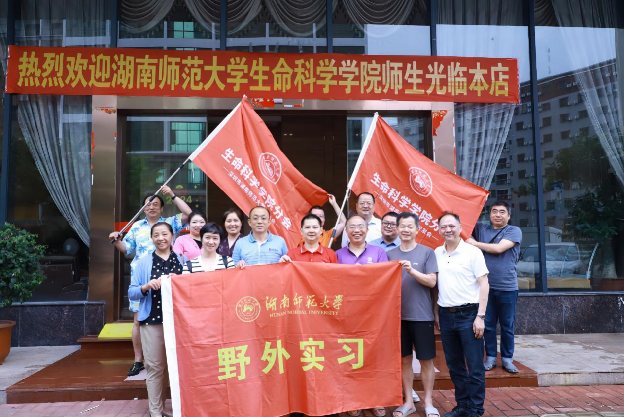 (通讯员  邓芝涵 戴永烨 蒋梦瑶)6月4日下午,湖南师范大学深圳校友会执行会长兼秘书长邹寿长、副会长邓四红、校友何海辉、王海霞、杨文萃等、湖南师范大学惠州校友会会长杨中华、执行会长李志勇、常务副会长潘太年、副会长武腊香、胡小国、理事刘炜文、顾问张建忠、校友刘志强、罗国亮等抵达广东省惠州市巽寮湾考察生命科学学院2023级海滨实习活动。生科院海滨实习队部分成员参与此次活动。