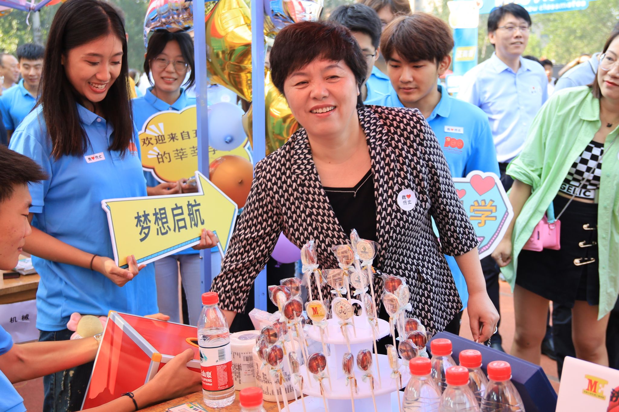 在迎新报到点,学院为每一位新生准备了迎新大礼包,其中包括定制的帆布袋、院服、学院宣传页、新生文件袋,同时学院还准备了“抽盲盒”的趣味活动,有学院定制文创礼盒、机械专业制图工具、英语四级单词卷纸、学院特色钥匙扣、校园风景棒棒糖等,通过盲盒的形式收获来自济南大学的第一份礼物。