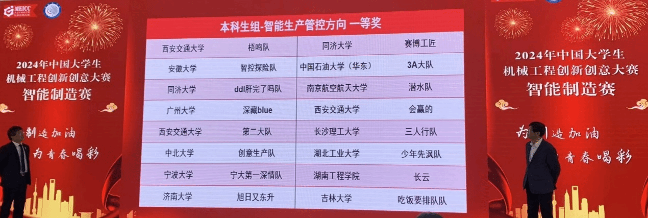 11月8日,2024年度中国大学生机械工程创新创意大赛—智能制造赛全国总决赛在上海落下帷幕。我院选派 “智能制造工程”专业为主的学生组建8支代表队参赛,并在比赛中斩获佳绩,成为山东省唯一获得此赛事全国一等奖的省属高校代表队。