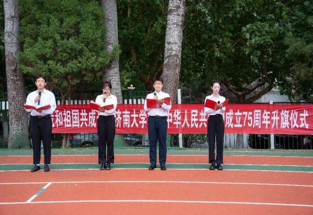 升国旗,赓续红色血脉。早七时整,学院团委书记薛浩、各年级辅导员老师与新生同学们在操场参加隆重的升国旗仪式。国旗护卫队迈着铿锵的步伐,护卫着五星红旗走向升旗台。随着激昂的《义勇军进行曲》奏响,五星红旗在微风中冉冉升起,迎风飘扬。最后,师生共同歌唱《我和我的祖国》。