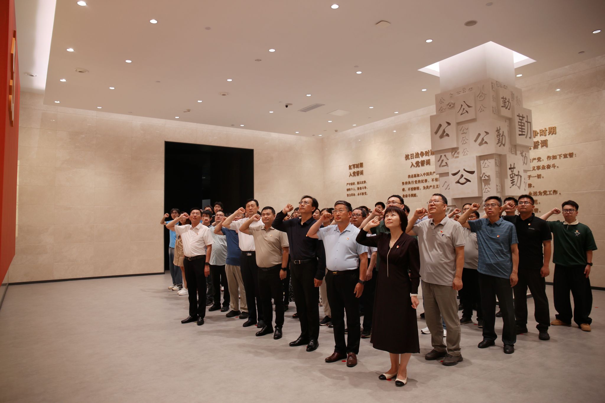 在鲜红的中国共产党党旗前,全体党员整齐列队、高举右拳,在学院党委书记程涛的带领下重温入党誓词。宣誓仪式庄重肃穆、字字千钧,既是对党的庄严承诺,更激励全体党员将入党誓词内化于心、外化于行,始终保持共产党人清正廉洁的政治本色。最后,党员师生集中观看以山东省典型腐败案例为题材的警示教育专题片。