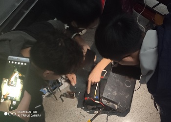 晚上义务修车服务队收到一位老师的在线求助,在得知对方电动车出现故障后,修车队队员们怀着服务他人、帮助他人的热情迅速出动,并在机械楼一楼大厅开展义务修车活动。修车队的队员们仍迅速出发,在询问电动车出现的故障并对其认真检查后,终于找到“病因”,电动车电源接线头由于安装师傅未焊实而脱落,导致电动车电瓶断电。由于电池顶壳被固定绳锁紧,对其拆装也变得极为困难。队员们认真讨论解决问题的方法,并确定了解决方案。经过耐心细致的修理后,终于将电动车电瓶接线头重新焊接到原位置,使电瓶正常供电。