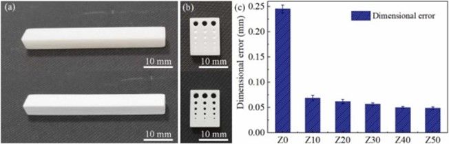近日,我院王守仁教授团队在陶瓷增材制造领域取得新进展,相关工作以“Improved mechanical performance and forming accuracy of fluorapatite glass-ceramics manufactured using vat photopolymerization with the addition of zirconia”为题,发表于增材制造领域国际顶级期刊《Additive Manufacturing》(中科院一区,影响因子11.0)。王高琦副教授为论文第一作者,王守仁教授为通讯作者,济南大学机械工程学院为第一单位和通讯单位。